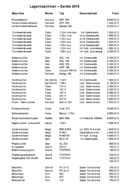 Folgende Maschinen und Geräte haben wir für Sie auf Lager: